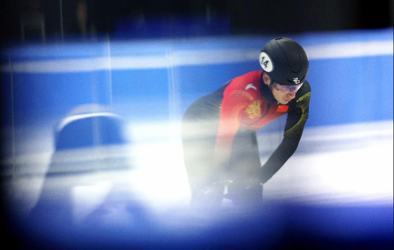 1月29日,中国短道速滑队选手刘少昂在训练中。新华社发