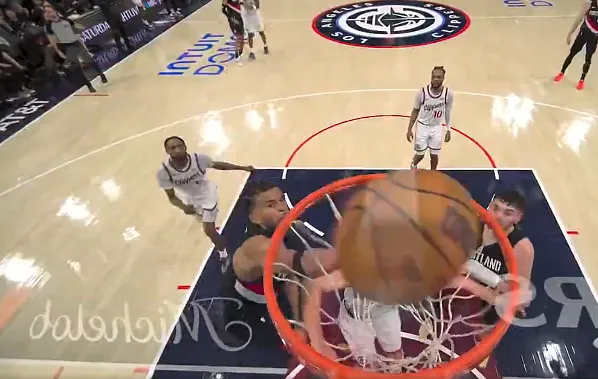 Kaiyun Sports-开云体育-卡马拉空中摘板抡臂砸扣可惜扣飞,开拓者还领先快船10分