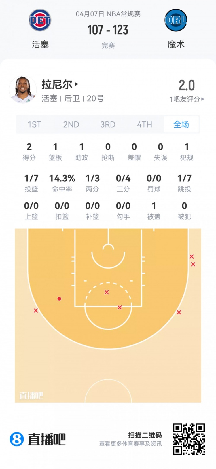 魔术落选秀奥拉莱斯 登场1.8分钟